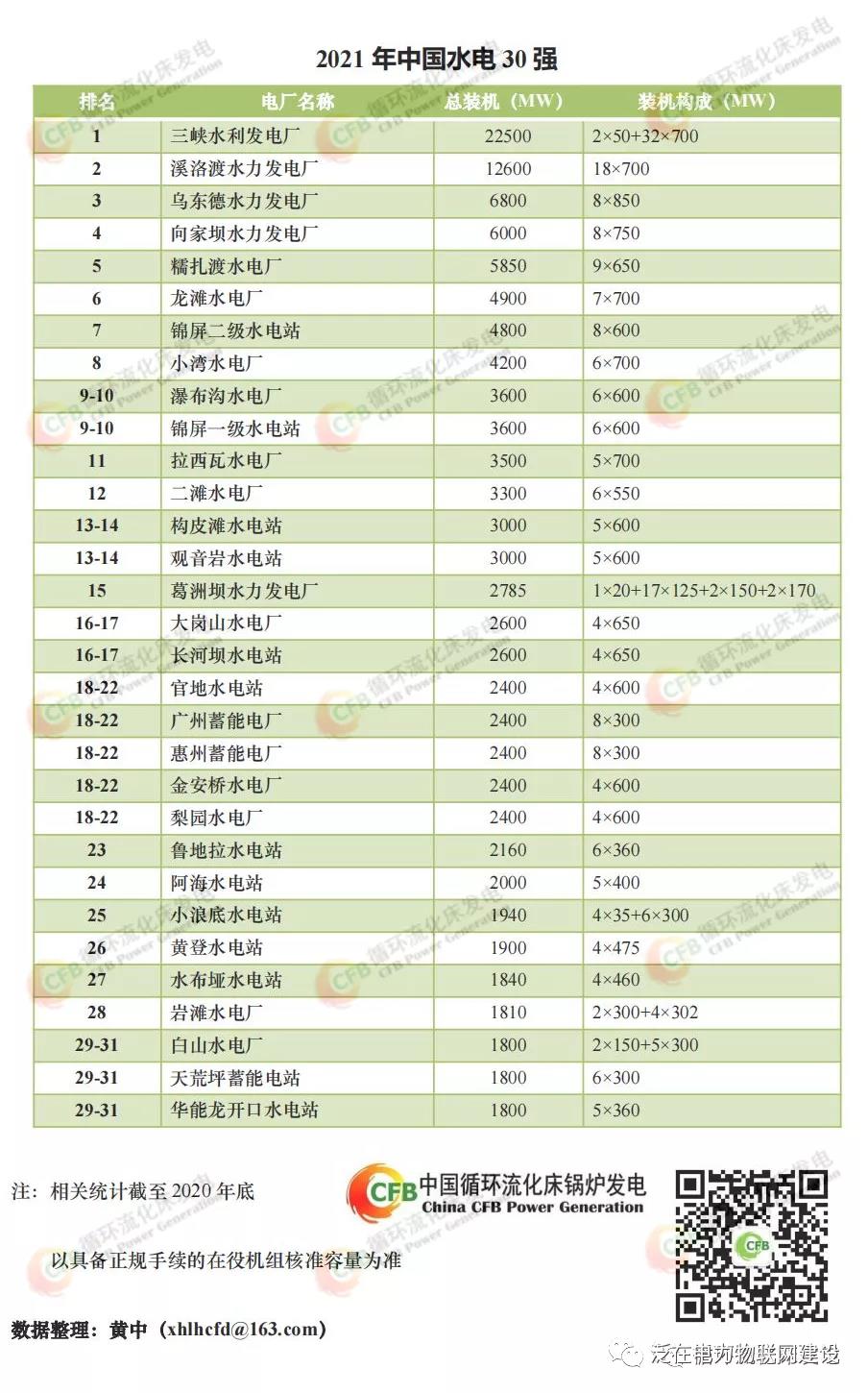 中國各類型電站排行榜