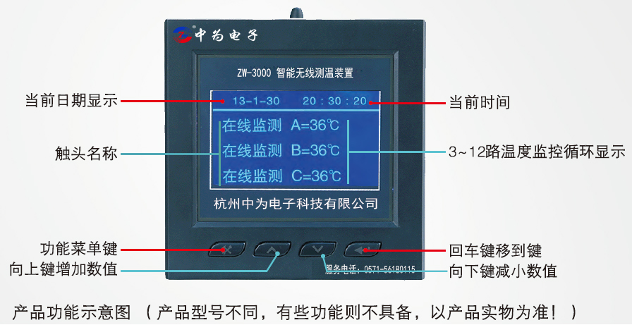 6、在線測溫點(diǎn)數(shù):3點(diǎn)、6點(diǎn)、9點(diǎn)、12點(diǎn)(下單指定)